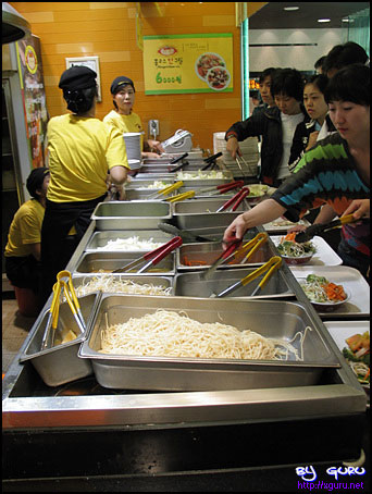 1. 돈을 내고 쟁반에 그릇을 하나 받습니다. 가격은 한그릇에 6천원