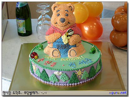 [케익 아티스트] 인주에게 전날 부탁해서 3D 2단 푸우케익을 주문 ^_^